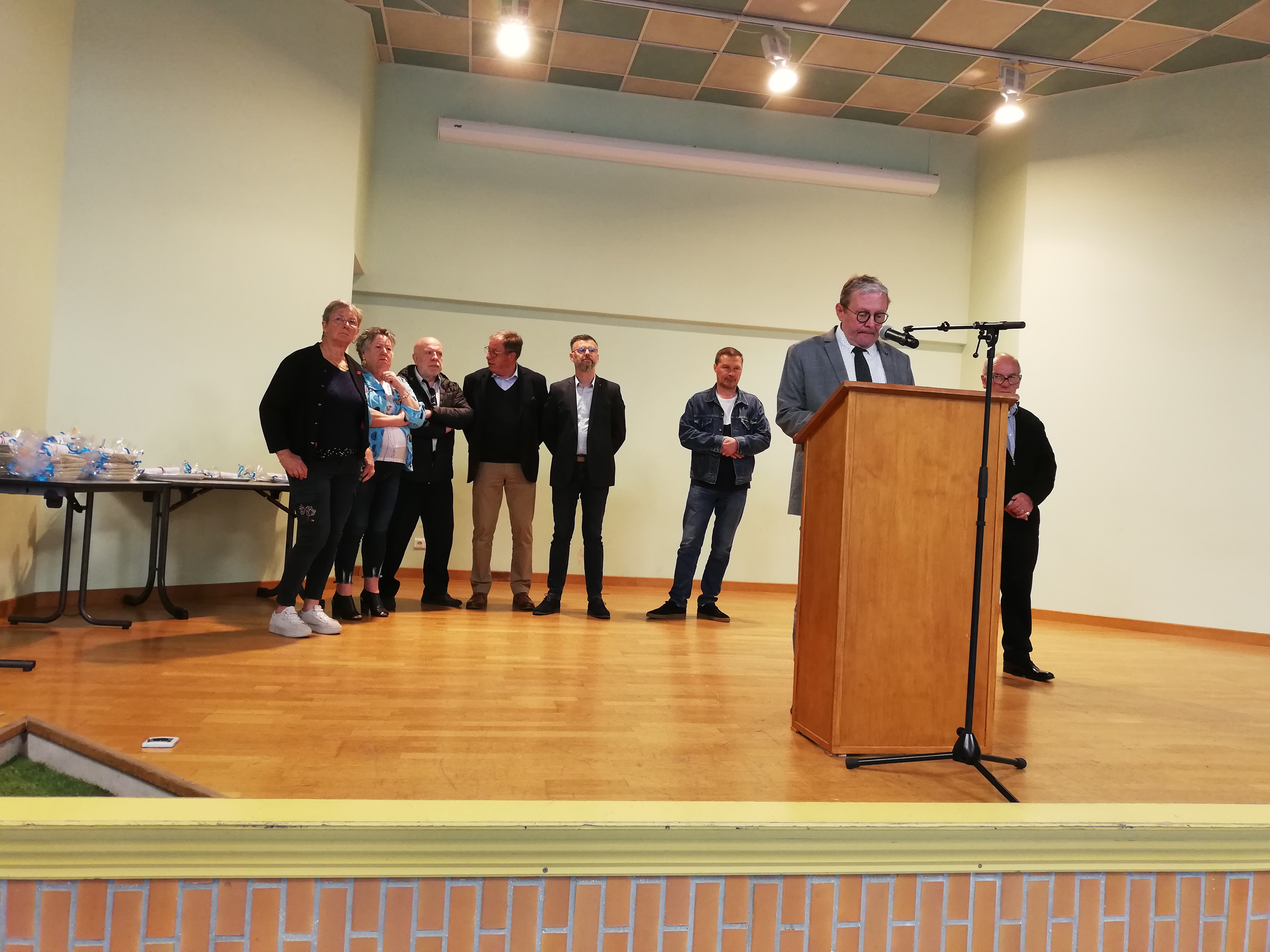 Ce 1er Mai, après un dépôt de gerbe au monument aux morts accompagné par notre Harmonie Municipale, et un discours de circonstance dans la salle J. Masquelin par M. le Maire, la Municipalité a salué et récompensé une quinzaine de récipiendaires aux diplômes d’honneur du travail. Derrière ce diplôme, c’est une reconnaissance de vingt, trente, trente-cinq, voire quarante années d’activité, de compétences acquises, de réussite et de mérite largement applaudie par l’assemblée et les familles, et dont chacun peut être fier.
