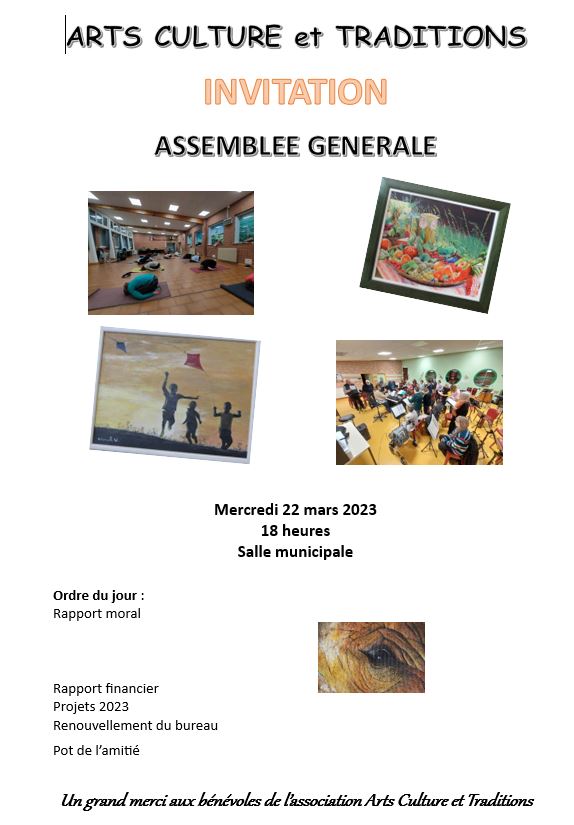 Non classé ASSEMBLEE GENERALE ARTS CULTURE et TRADITIONS Date: 13 mars 2023Author: comablain 0 Commentaires INVITATION invitationag2023Télécharger Partager : Imprimer(ouvre dans une nouvelle fenêtre) Imprimer J’aime chargement… Similaire