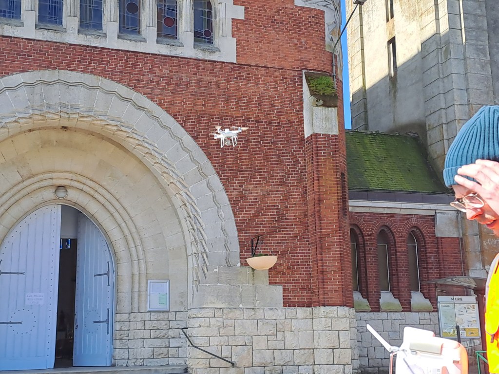 Ce survol par drone permettra de modéliser en 3D l’église et d’y apposer des photographies haute résolution, supports nécessaires aux futurs intervenants du projet de réparation de l’édifice .
