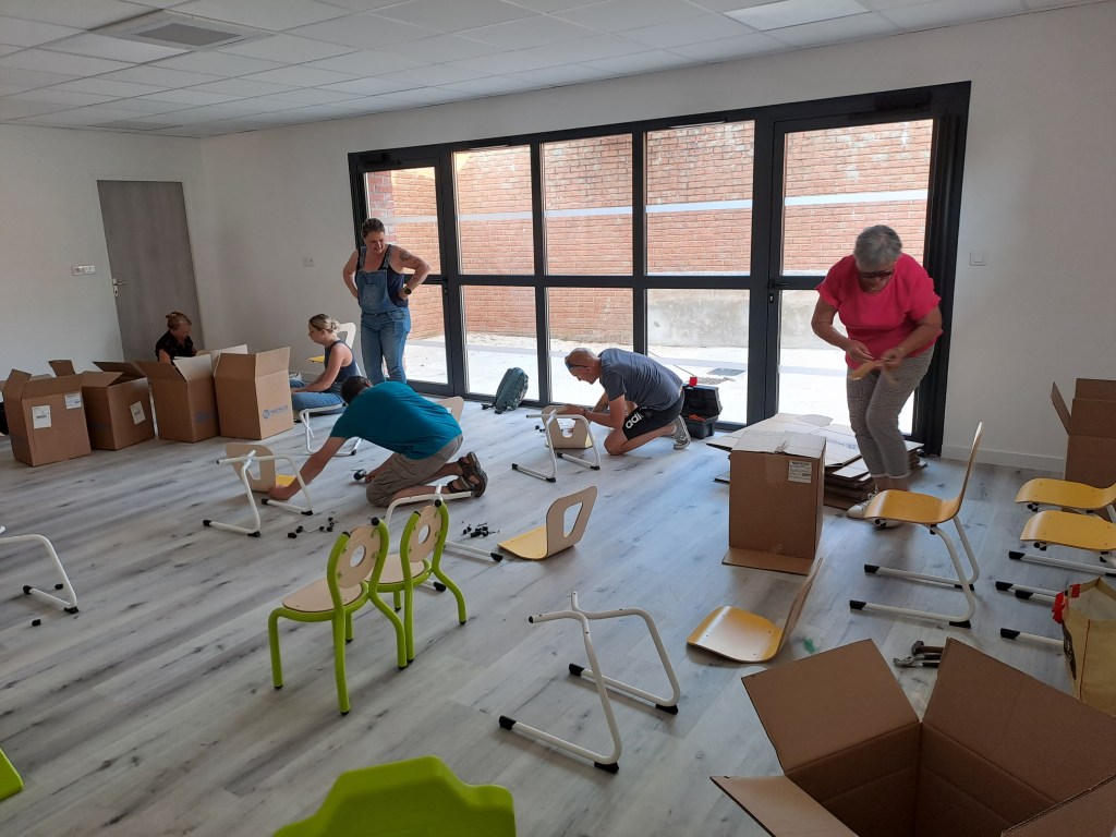 De nombreux cartons les attendaient et il aura fallu pas moins de quatre heures pour assembler l’ensemble du mobilier (chaises, tables, ect.).