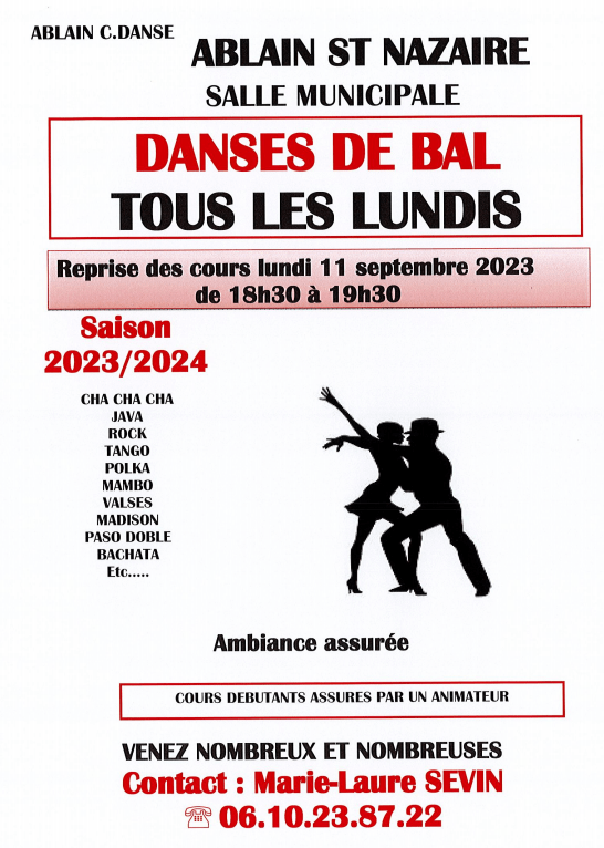 Non classé Information rentrée association Danses de bal Date: 23 juillet 2023Author: comablain 0 Commentaires Partager : Imprimer(ouvre dans une nouvelle fenêtre) Imprimer J’aime chargement… Similaire