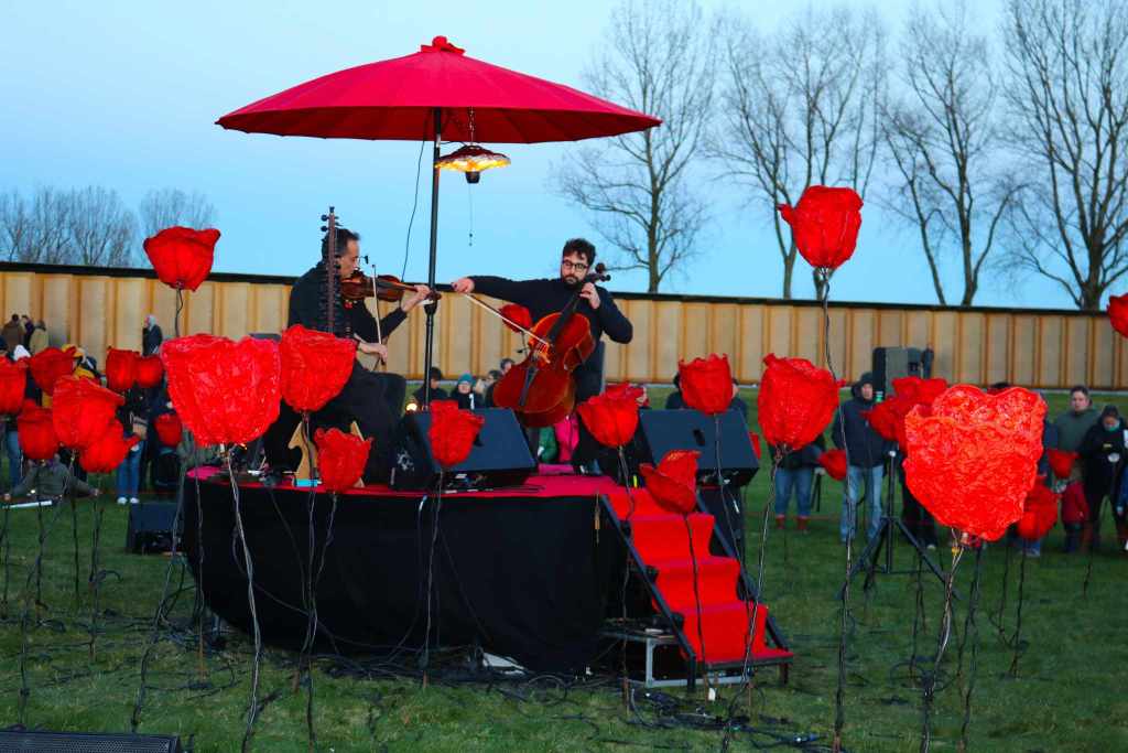 La place a été laissée un peu plus tôt à la poésie, au cœur de l’anneau de la Mémoire, avec Le chant des coquelicots. Un spectacle porté par la compagnie Fredanco au cours du duquel des dizaines de coquelicots géants se sont illuminés au rythme d’une musique inspirée des battements de cœur ponctué par la traditionnelle descente aux flambeaux.