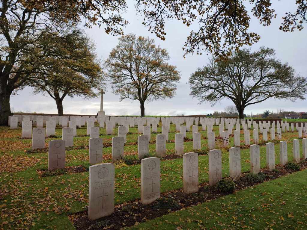 On y trouve de nombreuses tombes de soldats canadiens identifiés par la feuille d’érable, mais aussi des soldats du Royaume uni identifiés par le symbole de leur régiment. Une croix portant un glaive montre qu’il s’agit bien d’un cimetière militaire.