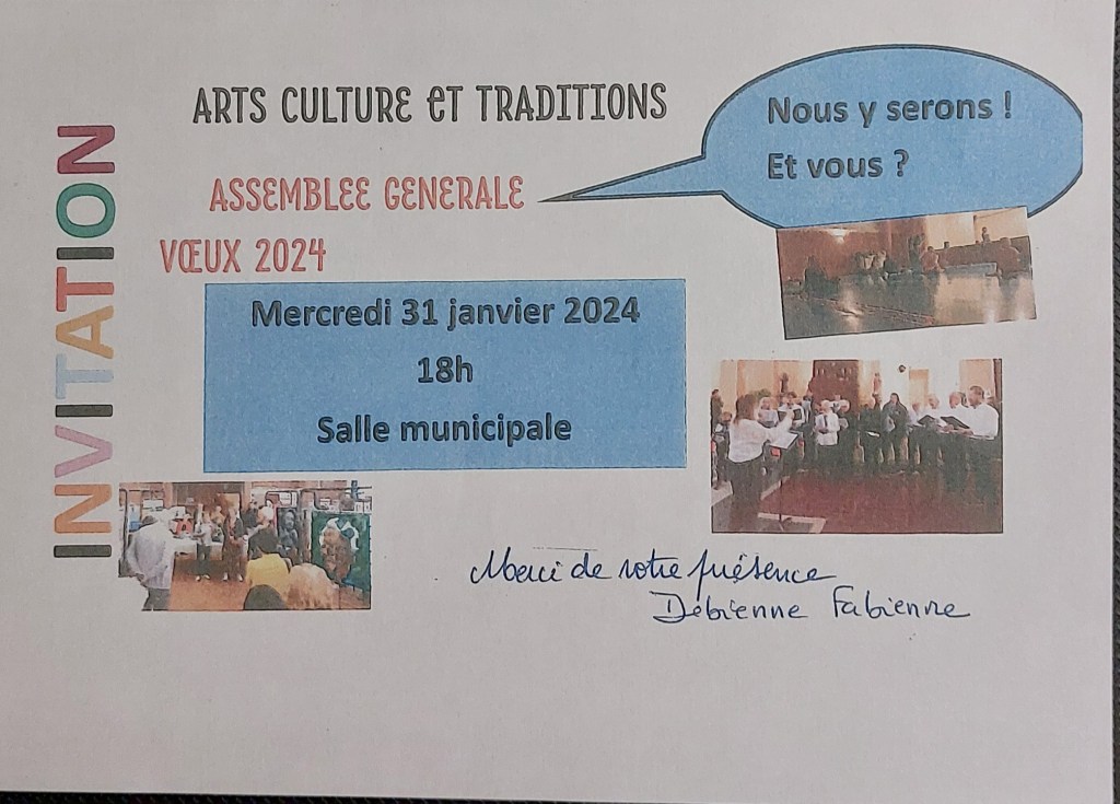 Non classé Invitation à l’AG Arts Culture et traditions 31/01 Date: 25 janvier 2024Author: comablain 0 Commentaires Partager : Cliquer pour imprimer(ouvre dans une nouvelle fenêtre) Imprimer J’aime chargement… Similaire