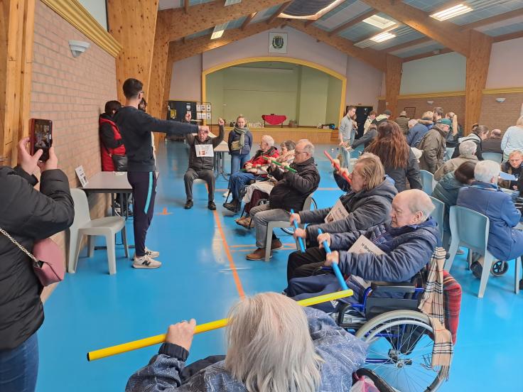 Théo Balavoine, enseignant en activité physique adaptée à la Résidence de la vieille église, a organisé une rencontre inter EHPAD, et invité les résidents de 5 autres communes environnantes, afin de participer à des ateliers ludiques, animés par de jeunes collègues.