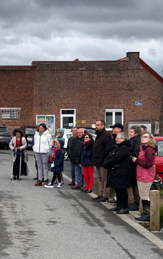 Madame la Première Adjointe a ensuite invité Michel Descamps, petit-fils de Marcel Lancino, et la famille Dubrulle à l’accompagner pour déposer une gerbe au Monument aux morts.