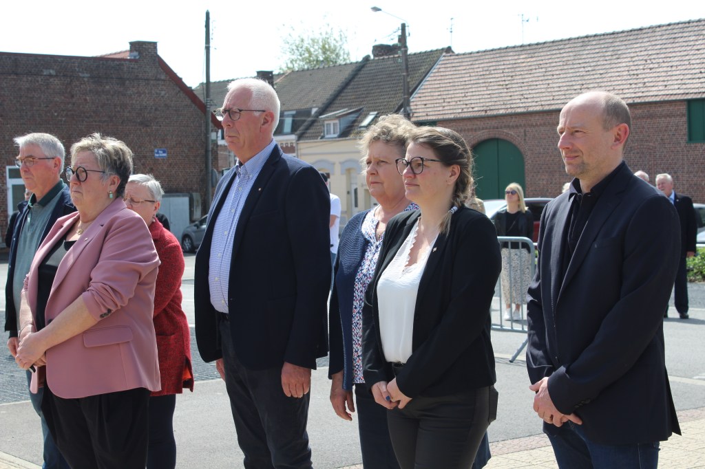 En ce qui concerne notre village, après un dépôt de gerbe au monument aux morts par la Municipalité en compagnie de l’Harmonie Municipale, Philippe Vantorre, Maire a prononcé un discours de circonstance, et avec la participation des membres du Conseil ont attribué un diplôme assorti d’un petit cadeau en récompense pour ceux qui ont mérité leur médaille d’honneur du travail. Soit :