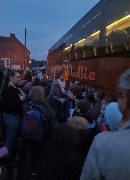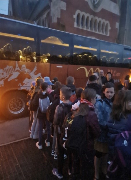 Madame Juskowiak était présente au point de rendez-vous dès 5h du matin, accompagnée des enseignants, de M-L Sevin et la présence de L. Clerbout. L’émotion est palpable, car c’est la concrétisation d’un grand projet pédagogique annuel.