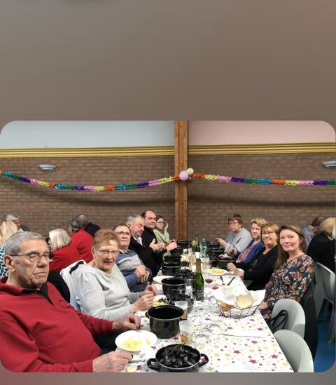 Dans un cadre chaleureux et animé, les bénévoles ont accueilli les convives avec enthousiasme à la salle des fêtes. Le plan de table soigneusement établi a permis à chacun de profiter pleinement de la soirée. Les moules et frites, servies directement à table, ont ravi les papilles des participants, tandis que la buvette, bien fournie, a offert une large gamme de boissons pour accompagner le repas dans une ambiance détendue et conviviale.