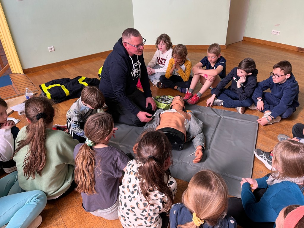 Un Atelier Gestes qui Sauvent / Défibrillateur M. Bultez, pompier professionnel, a initié les élèves aux gestes de premiers secours. De manière très concrète, ils ont appris les réflexes à adopter en cas d’urgence, ainsi que l’utilisation d’un défibrillateur.