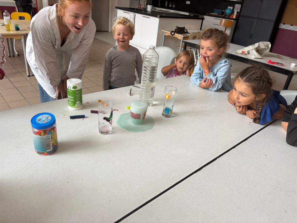 Nos jeunes inventeurs se sont lancés dans divers ateliers manuels pour explorer le monde fascinant des réactions chimiques et des phénomènes scientifiques. L’expérimentation et la curiosité étaient au rendez-vous !