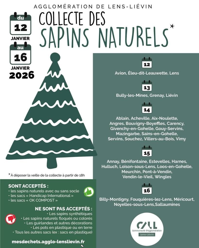 Pour notre commune, la collecte s’effectuera le mercredi 14 janvier.