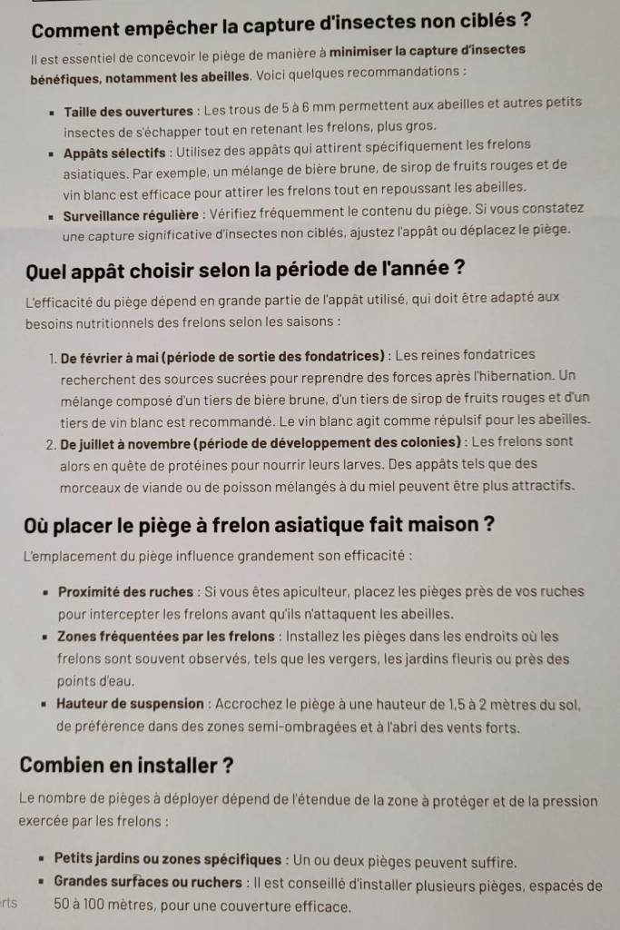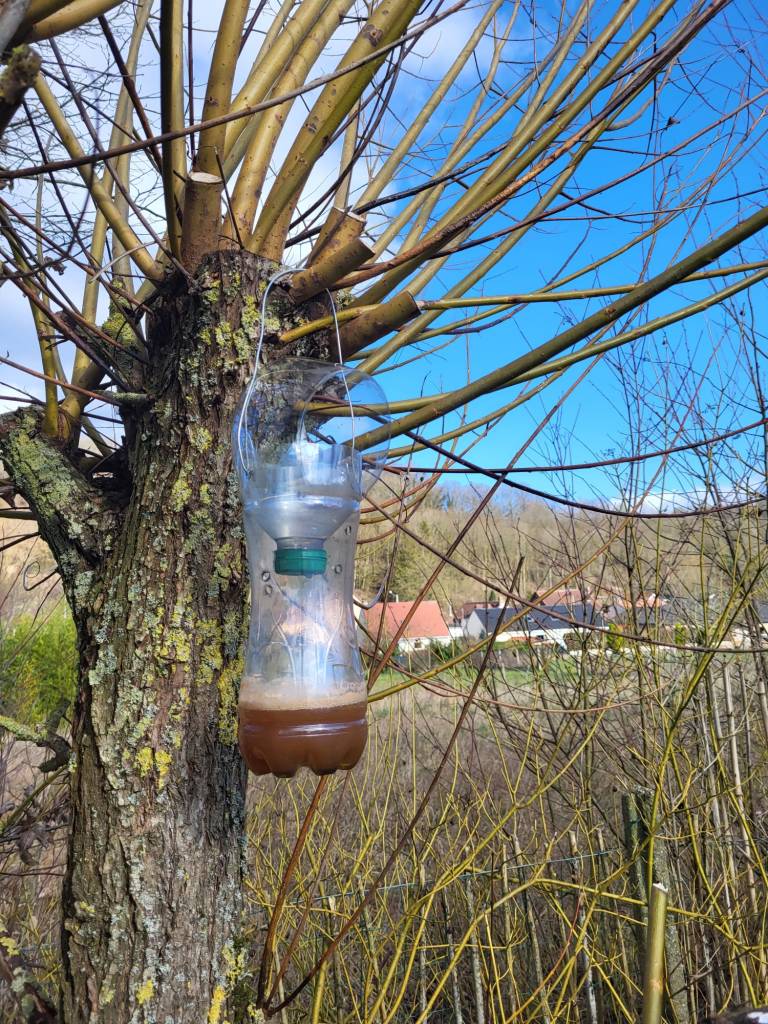 Le but étant de les installer rapidement dans le jardin, entre 1,50 et 2m de haut dans une zone semi ombragé et éloignée des enfants. Les reines de frelons asiatiques sortent de terre en ce moment pour fonder leur nid primaire, c’est le moment parfait pour les piéger, car une reine tuée équivaut à 1000 frelons en moins dans nos campagnes.