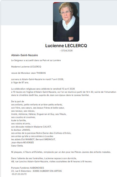 Non classé Faire part de décès Mme Thobois Date: 8 avril 2026Author: comablain 0 Commentaires Partager : Imprimer(ouvre dans une nouvelle fenêtre) Imprimer J’aime chargement… Similaire