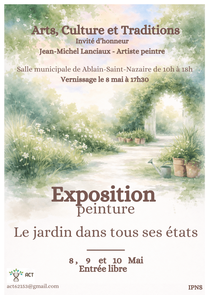 Non classé Exposition peinture ACT 8, 9 et 10 mai Date: 23 avril 2026Author: comablain 0 Commentaires Partager : Imprimer(ouvre dans une nouvelle fenêtre) Imprimer J’aime chargement… Similaire