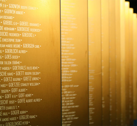 La liste des noms de 579.606 tués sur les 90 kilomètres de front du Nord-Pas-de-Calais entre 1914 et 1918, représentant 40 nationalités, a été dressée à partir des données fournies par chaque nation, principalement grâce aux archives françaises, britanniques et allemandes :