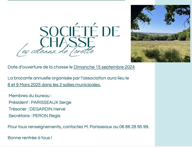 Pour des mesures de sécurité, le port du gilet fluo est obligatoire pour les chasseurs. Aussi, il est conseillé à tous promeneurs empruntant les chemins (piétons, cyclistes) de porter un vêtement fluo durant la période de chasse.